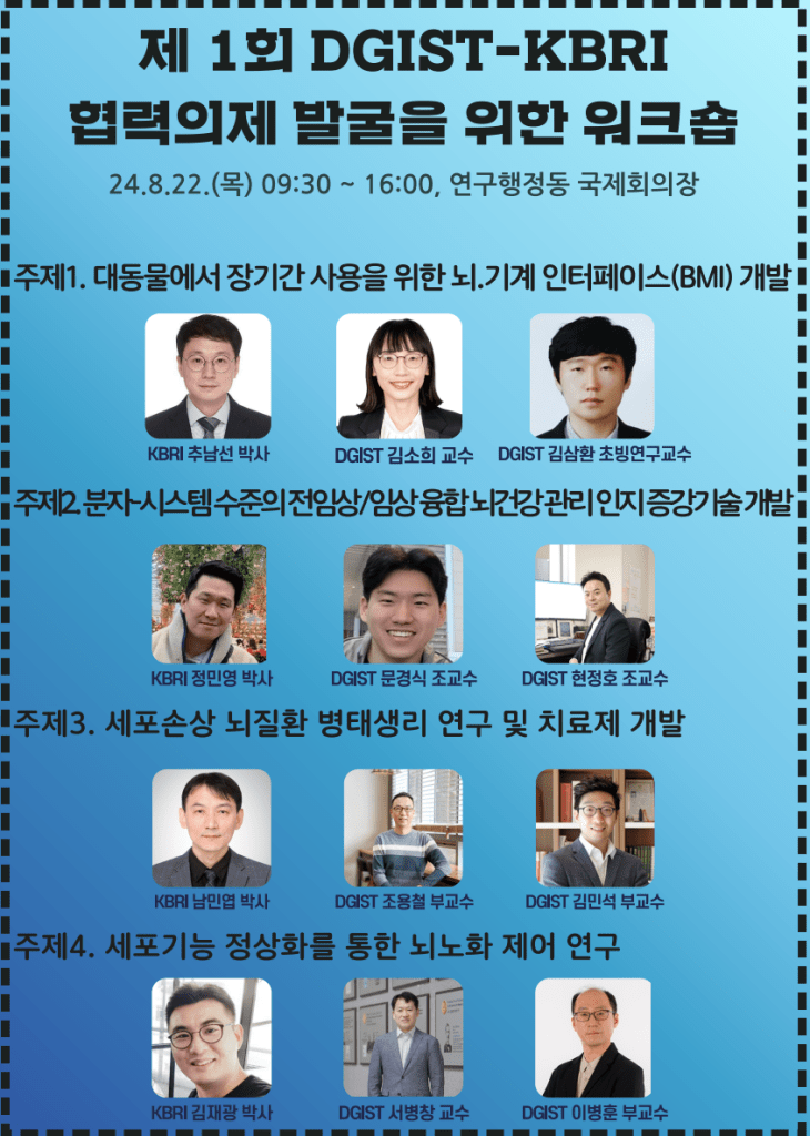 제1회 DGIST-KBRI 협력의제 발굴을 위한 워크숍 2024년 8월 22일(목) DGIST